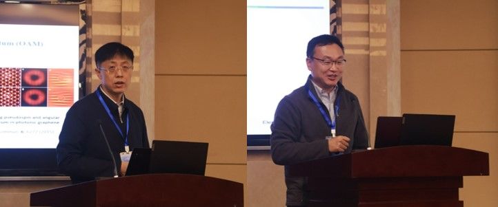 山西大学副校长张靖院士带来了首场大会报告,深度解读了自旋轨道耦合形成的狄拉克点中玻色-爱因斯坦凝聚的量子涡旋现象。紧接着,浙江大学王大伟教授报告了利用室温原子实验实现Haldane模型方面的进展。这两场高水平报告内容前沿、见解深刻,现场反响热烈。在随后的交流环节,报告人与现场师生进行了深入探讨,并详尽解答了各类问题。