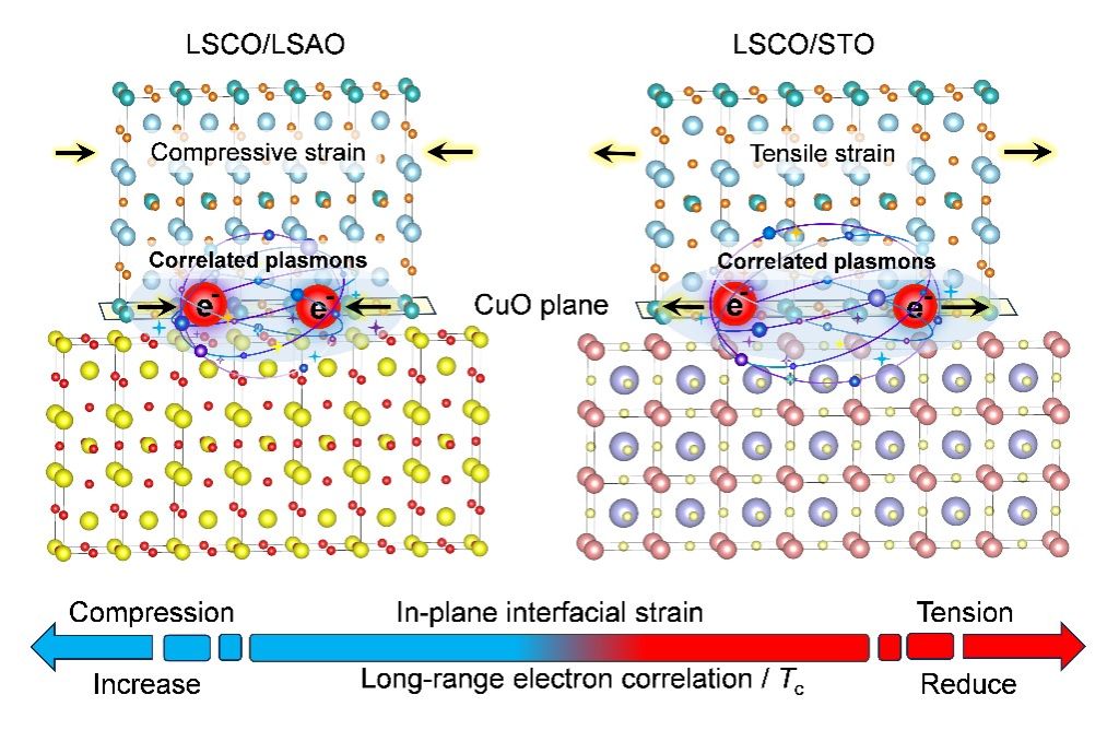 尽管高温超导材料早在20世纪80年代被发现,其微观形成机理长期未能统一认识,成为凝聚态物理学中最重要、最具挑战性的未解问题之一。近年来的研究表明,高温超导材料的宏观物性不仅由低能准粒子行为所决定,高能集体激发同样在电子关联、磁交换以及超导配对机制中发挥着重要作用。然而,相关高能激发过程仍然缺乏直接的实验观测与系统的理论解释。针对这一关键科学问题,尹鑫茂教授团队选取典型铜氧化物高温超导体La1.85Sr0.15CuO4作为研究对象,采用高分辨椭圆偏振光谱技术,首次在具有超导性质的样品中清晰观测到可调控的高能等离激元激发,而该类激发在非超导样品中完全缺失。实验结果表明,这些等离激元起源于莫特强关联能带中的集体激发行为,并受到界面应变和长程库仑相互作用的显著调制。进一步的实验与理论计算发现,长程库仑相互作用对电子态密度及集体激发谱具有重要影响,从而建立了高能等离激元激发与高温超导形成之间直接而明确的物理联系,并揭示该联系可通过界面应变与长程库仑相互作用进行有效调控。该研究不仅为重新认识高温超导的微观机理提供了新的物理视角,也为通过界面应变与电子关联协同调控超导性能提出了可行思路。相关成果有望为高温超导材料在核聚变磁体、超导能源输运、量子计算以及新型功能器件等领域的应用奠定更加坚实的理论基础,对推动未来高性能超导材料的理性设计具有重要意义。