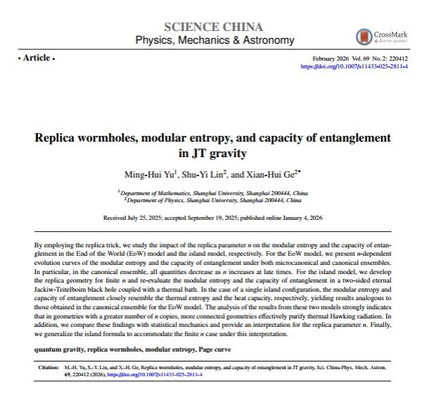 China Physics, Mechanics & Astronomy》(中科院1区,IF=7.5)上发表题为《Replica