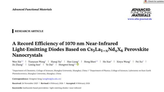 Nanocrystals”的研究成果。上海大学理学院2023级硕士谢玟、博士后王天源为该文章的共同第一作者,通讯作者为宋宏伟教授。文章的合作者还有理学院的戴晔教授、孙丽宁教授、张杰副教授、徐飞副教授等。上海大学为唯一完成单位和通讯单位。