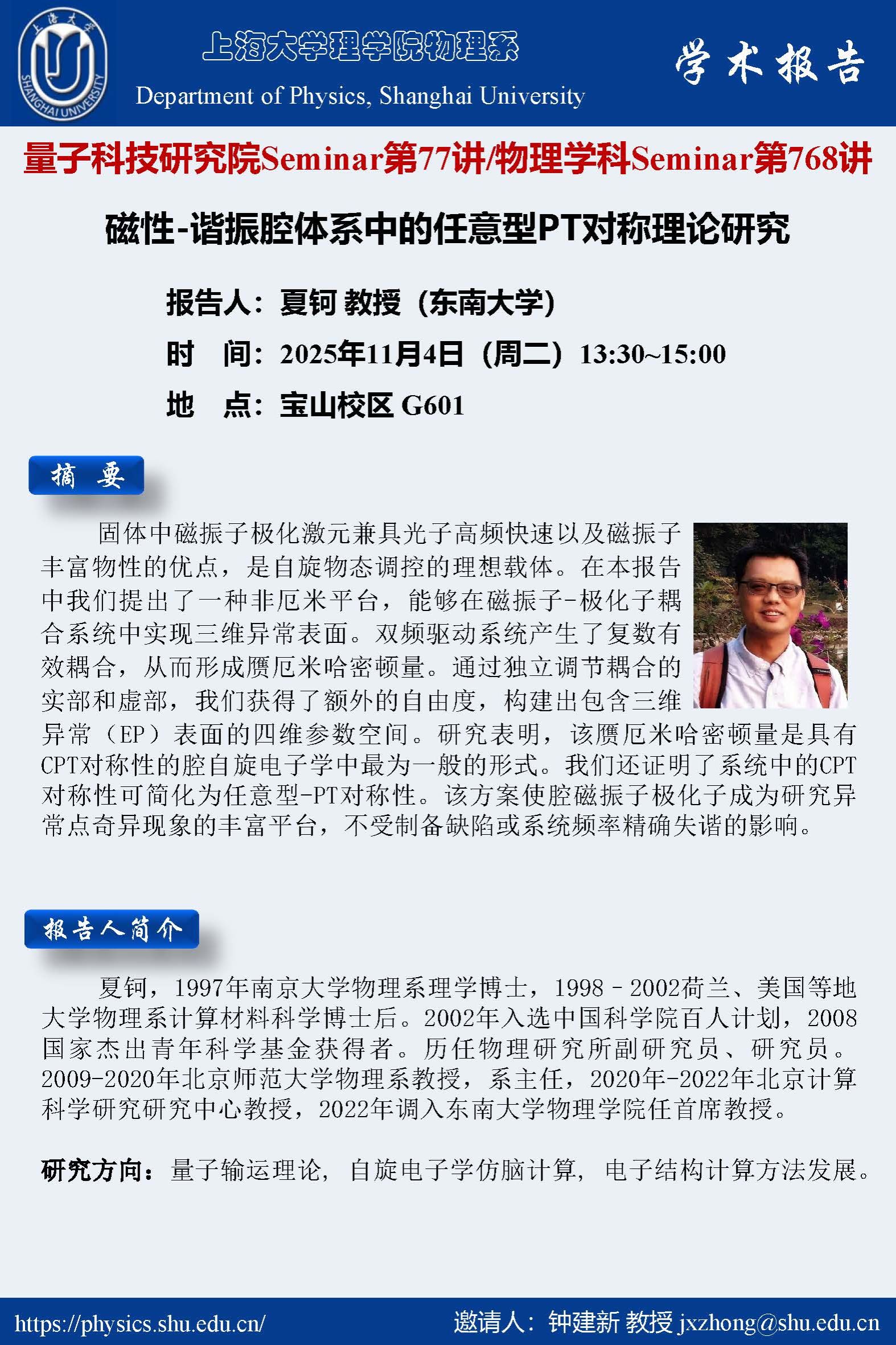下一条:物理学科Seminar第767讲:黄庆国(2025年10月23日14:00)