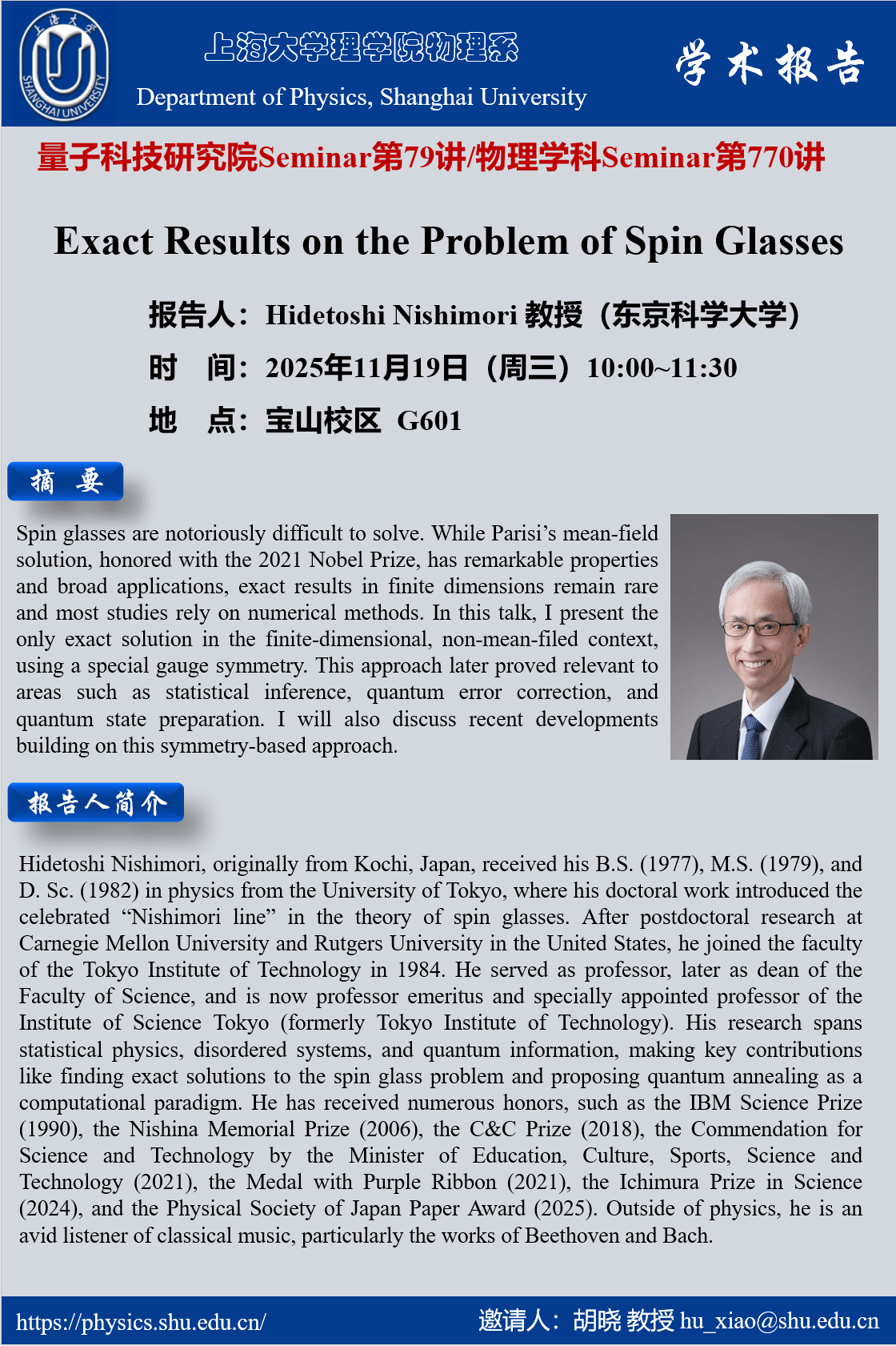下一条:量子科技研究院Seminar第78讲暨物理学科Seminar第769讲:Dr. Hidetoshi Nishimori(2025年11月18日10:00)