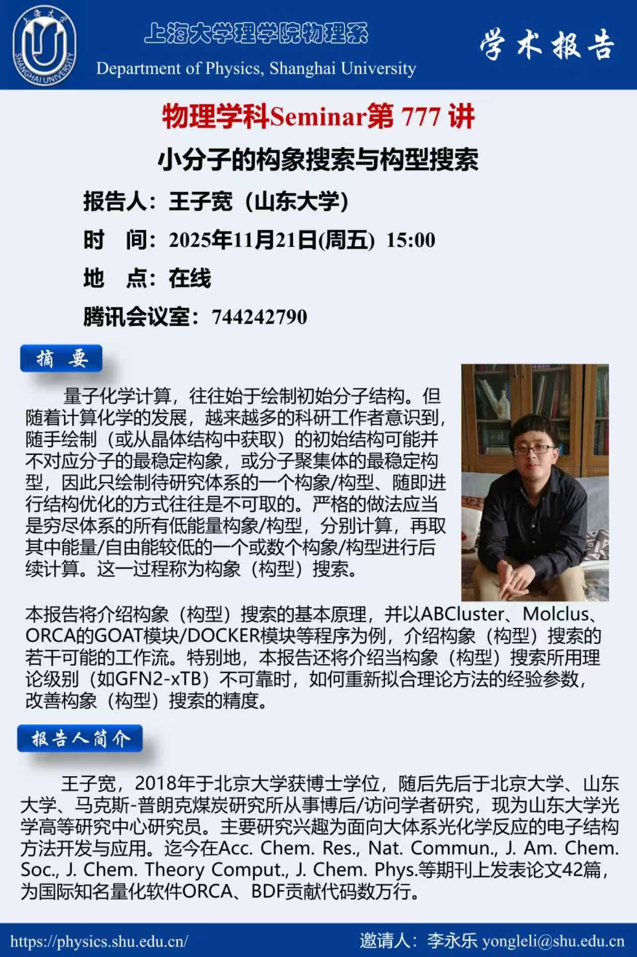 上一条:物理学科Seminar第778讲:Dr. Jesús Cruz Rojas(2025年11月24日14:00) 下一条:物理学科Seminar第776讲:程木田(2025年11月20日 13:00)